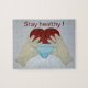 Mantenha-se saudável com um Coração vermelho, máscara protetora e luvas de borracha