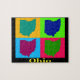 Silhuetas coloridas do mapa do pop art do estado de Ohio.