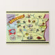 Mapa postal colorido brilhante do Estado de Arkansas reposto num quebra-cabeça de 11x14 de mandíbula.