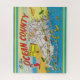 Um mapa postal vintage, muito colorido do condado de Oceano, redirecionado para a costa de Nova Jersey!