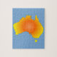 Uma versão ensolarada para o mapa australiano. Imagem em amarelo e laranja. Fundo azul em imagens selecionadas.