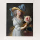 Remix de arte vítrea de Marie Antonieta segurando uma flor de anêone rosa na mão com uma fita azul