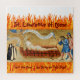 "Vire-me", ele disse aos seus carrascos. "Estou farto deste lado!" Conhecido especialmente pelo seu sentido de humor, Rua. Lawrence de Roma (século III) é um dos mártires mais famosos da Cidade Eterna. Nesta esplêndida pintura de c. 1430, do artista veneziano Jacobello del Fiore, Rua. A disparidade de tamanhos das figuras principais é uma característica da arte que não emprega perspectiva. Quanto maior a figura, mais importante a pessoa retratada na composição, sendo Deus o Pai uma exceção aqui. Lawrence, propenso no ferro-velho, domina esta cena. Ao erguer o tronco superior nos cotovelos e com as mãos dobradas em oração, o Santo olha para Deus com uma expressão serena no rosto. Tal como era costume na arte pré-renascentista, Deus, o Pai não é representado como figura humana cheio, mas apenas como uma cabeça emergente das nuvens no canto superior esquerdo da imagem onde apenas a Mão de Deus teria aparecido simbolicamente em tempos anteriores. À direita do painel, Ruas. Os carrascos de Lawrence, a seguir em tamanho relativo e importância para ele, tendem o fogo debaixo do ferro-duro com ataques de longo alcance, o que está na frente protegendo seu rosto do calor das chamas. À esquerda, há duas freiras ajoelhadas, freiras que ou encomendaram o próprio painel como objeto de devoção privada ou encomendaram o painel em nome do seu convento como parte de um trabalho de arte maior como um predella. São os menores números de todos. Os elementos subsidiários incluem dois pergaminhos com inscrições latinas, um no espaço acima da Rua. Lawrence é santo paterno de comediantes e cozinheiros. + Banquete: 10 de agosto + Image Credit (M 022): Martyrdom of Santo Lawrence, com Duas freiras, por Jacobello del Fiore (italiano veneziano; 1370-1439), pintura tempera sobre o painel de madeira no estilo internacional gótico, 27,7"x14,9" (70,5 cm) x 38 cm), Rijksmuseum, Amesterdã, Países Baixos, Acc. SK-A-4001. As freiras foram identificadas como dominicanos ou beneditinas. Do Wikimedia Commons {{PD-Art|PD-old-100}}. O arquivo de imagem foi identificado como livre de restrições conhecidas nos termos da lei de direitos autorais, incluindo todos os direitos relacionados e vizinhos. + Crédito de imagem (borda chamas): extensão/adaptação do clipe de borda de fogo (chamas digitais de fogo) por Diane Hudson, PublicDomainPictures.net, CC0 1.0 Universal (CC0 1.0) Dedicação do Dominio público.