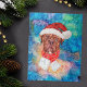 O Natal francês Mastiff Breed Dog apresenta uma aquarela de um Mastiff francês com um Chapéu Papai noel vermelho, um cachecol de Natal vermelho e uma aquarela galáxica.