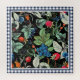 Ilustração em aquarela de uma mistura de frutas vermelhas na videira, em fundo escuro com um lindo xadrez country de piquenique