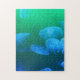 Fotografia atmosférica da natação transparente das medusa mar azul/verde.