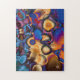 Este quebra-cabeça caracteriza meu fractal "memórias". Esta imagem abstrata tem cores azuis, marrons, roxas, da laranja e da cerceta.