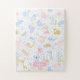 Adicione um toque especial à coleção de jogos da sua garotinha com este adorável quebra-cabeça de serra azul e rosa pastel. A quebra-cabeça tem um padrão de elefantes, cães, gatos, macacos, unicórnios, coalas, tartarugas, narvais e muito mais. Adicione o primeiro nome e monograma inicial da sua garotinha para um toque personalizado.