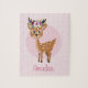 Este quebra-cabeça de crianças bonitinho e moderno apresenta um adorável cervo florestal e flores aquáticas. Este design rosa adorável também tem um lugar para você adicionar o nome da sua garota, fazer-o o perfeito presente de rena floral rosa para qualquer amante da natureza!