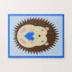 Este incrível quebra-cabeça apresenta uma imagem de arte digital de um adorável ouriço bebê marrom espinhoso com pálpebras marrons e um grande sorriso, segurando um coração azul. Um ótimo design para celebrar um menino.
