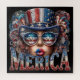 Celebre o 4 de julho em estilo ousado com este glamouroso design patriótico. Apresentando uma mulher estilizada vestindo óculos de sol vermelhos, brancos e azuis, um chapéu de bandeira, e o texto "Merica", é a impressão para as vibrações do Dia da Independência e o orgulho americano.