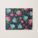 Step into a world of nocturnal beauty with the Midnight Meadow puzzle. This striking design features a seamless folk-art pattern of vibrant magenta tulips and soft teal bellflowers set against a deep navy blue background. Accented with delicate pink blossoms and whimsical golden swirls, the high-contrast color palette creates a rich, tapestry-like effect. The repeating floral motifs and intricate linework offer a rhythmic and satisfying challenge for puzzle lovers, making it an elegant statement piece for any home.