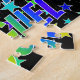 This lively and exciting birthday-themed jigsaw puzzle design features the message "HAPPY BIRTHDAY, MIGUEL" with the characters having a colorful rainbow spectrum inspired gradient pattern, along with a fun stars background pattern. A colorful puzzle like this might be used to send birthday greetings to somebody named Miguel. [~Z0000468]
