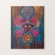 Este quebra-cabeça colorido apresenta uma entidade mística ao estilo hindu com um olho de costura. Esta é uma quebra-cabeça divertida.