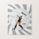 Esta legal quebra-cabeça com silhueta de voleibol, nome personalizado, número e ano constituiria um presente maravilhoso para uma garota que ama vôlei! Adicione facilmente o nome e o número desejados clicando na opção "personalizar este modelo".