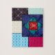 8 padrões diferentes são usados para criar um design de retalhamento divertido com um monograma offset em amarelo.