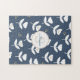Quebra-cabeça de monograma branco e azul para toda a família construir. Peça isto para um presente de casamento. Os recém-casados podem construir o quebra-cabeça e enquadrá-lo. Uma ideia tão bonita e única.