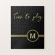Quebra-cabeça Monograma personalizado de ouro elegante a preto