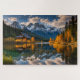 Um acampamento rústico ao lado de um lago, com montanhas cobertas de neve no fundo, e árvores escancaradas na glória do outono de cheio criam um belo quebra-cabeça de serra. Perfeito para quem ama a natureza e o exterior.