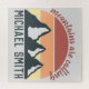 As montanhas de pastéis de safra chamam de design personalizável monograma. Desenho de uma montanha de neve com linhas de cor pastel em amarelo, laranja e vermelho representando o céu do pôr do sol. Acima do círculo céu está um ditado que montanhas estão chamando e debaixo das montanhas há um monograma onde você pode adicionar seu nome. Perfeito para os entusiastas da natureza e caminhada.