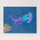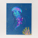 Legal água-viva azul e roxa pendurada debaixo do oceano.