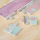 Five black cat silhouettes gaze at a dreamy lavender moon from a pastel rainbow fence. Soft watercolor art perfect for cat lovers and puzzle enthusiasts.