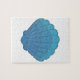 Um desenho de uma concha. Design mosaico em tons azuis.