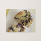 Quebra-cabeça Muffin de mirtilo aberto em uma placa branca