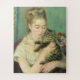 Esta bela pintura de August Renoir mostra sobre a cintura para cima, uma jovem mulher vestindo branca senta-se numa cadeira de braço abraçando um gato listrado marrom e preto. A parede atrás deles é verde-marinho, e a borda de uma cortina floral amarela linhas a borda esquerda da canvas. O cabelo castanho claro da mulher é puxado para cima, e a sua pele pálida é acentuada por bochechas rosadas. Os tons brancos e azuis do vestido de manga curta da mulher e o lenço amarrados em volta do pescoço contrastam com o vermelho-vermelho-lama da poltrona atrás dela. O corpo inferior do gato penetra no canto do braço esquerdo da mulher. Transfira esta imagem para o produto desejado. Minhas belas imagens de arte têm origem em galerias públicas e são otimizadas em alta resolução para oferecer um impressão de qualidade. Use as ferramentas de design para adicionar texto personalizado ou personalizar a imagem. Para obter mais imagens de arte, visite minha loja Art_Collection_21 e navegue nas coleções.