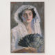 Esta design apresenta uma pintura do artista japonês Fujishima Takeji (1867-1943), que é notado por seu trabalho dentro de uma tradição de impressionismo ao estilo ocidental. Mostra uma senhora vestindo uma roupa branca elegante com um véu. Ela está segurando um fã preto em sua mão. A mulher está encarando a pintura com inteligência e confiança. É uma bela evocação da feminilidade. A arte original foi produzida em 1909.