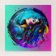 Mulher bonito com arte azul, turquesa, azul, roxa, lacrimejante, amarela e vermelha colorida ai feita em uma vibração herreal mística etérea.