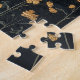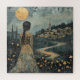 Quebra-cabeça Mulher Observando a Cidade ao Luar. © Jigsaw Wonderland na Zazzle. Este quebra-cabeça tem uma cena de uma mulher com um lindo vestido observando uma cidade à noite, ao luar.