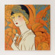 Revertendo à era rebelde do 1920 com esta bela peça de arte feita em um quebra-cabeça de quebra-cabeça. Uma elegante mulher parisiense cercada por flores laranja queimadas é projetada no estilo antigo Art Deco. Este quebra-cabeça faz um presente único para o francófilo em sua vida!