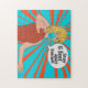 Quebra-cabeça mulher retrógrada de pop art com máscara facial