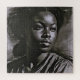 "Jasmine" Mulheres Em Carvão. O retrato captura uma bela jovem negra americana renderizada em carvão, seu rosto é estudado em contrastes com arrojamentos negros e brancos. Ela olha à distância, perdida no pensamento profundo, sua expressão serena ainda contemplativa. O estilo contemporâneo enfatiza as curvas femininas de seu rosto, destacando sua beleza através da dramática interação entre luz e sombra. A simplicidade da paleta monocromática melhora sua elegância, fazer a imagem de uma poderosa e introspectiva obra de arte.