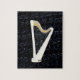 Características que deste design uma harpa do pedal contra um fundo escuro se encheu com as notas musicais.