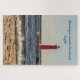 Uma das três luzes em Muskegon, Michigan. Ondas estão caindo na praia em um belo dia de outono tardio.