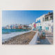 Mykonos, Grécia. Frente d'água em Pequena Veneza, ilhas de Cíclades.