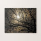 Este quebra-cabeça lindo apresenta um céu mystical do nighttime. O ar permeated com névoa. A Lua cheia que brilha através das árvores ilumina acima as nuvens enevoadas nas máscaras do ouro, amarelo alaranjado, branca e marrom e dos formulários um teste padrão abstrato interessante.