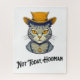 Uma ilustração digital de um gato de desenho animado em estilo vetorial usando um chapéu com a legenda Não Hoje, Humano.