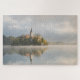 Quebra-cabeça Nascer do sol sangrado nevoento do lago com ilha