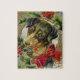 Quebra-cabeça Natal Antigo, Cachorrinho Dachshund com Azevinho