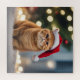 Um gato exótico e bonito de gengibre de shorthair vestindo um chapéu de Papai Noel.