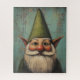 Um delicioso Nisse de Natal escandinavo, mostrando uma figura alegre de nariz vermelho com um chapéu alto e verde, olhos expressivos e uma barba branca fluente. Contra um fundo azul texturizado, este trabalho de arte nórdico tradicional incorpora o espírito festivo da época de férias, evocando o calor, o folclore e o charme escandinavo eterno