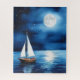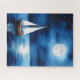 Quebra-cabeça em uma ilustração de um veleiro flutuando pacificamente em um mar calmo e iluminado, cercado por um céu noturno estrelado. A lua de cheio lança uma reflexão suave sobre a água, criando uma cena serena e tranquila.