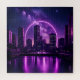 Quebra-cabeça Neon Cyberpunk Cityscape - Roxo futurístico