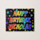 Quebra-cabeça "NICHOLAS" Primeiro Nome, Diversão "FELIZ ANIVERSÁ