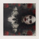 Uma noiva gótica em seu vestido de noiva preto cercado por rosas vermelhas está pronta para seu casamento no dia das bruxas. Arte gerada por IA
