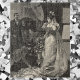 Ilustração vintage em preto e branco de casamento vitoriano apresentando uma sessão de fotografia de retrato nupcial. A noiva está em seu vestido de casamento clássico com buquê se preparando para fazer retratos de casamento com seu fotógrafo.