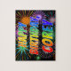 Este design de serra de aniversário empolgante e vibrante tem a mensagem "FELIZ ANIVERSÁRIO, COREY", tendo um espectro colorido do arco-íris inspirado em um padrão de gradiente inspirado, e um divertimento fogo de artifício celebratório inspira um padrão de fundo. Um quebra-cabeça excitante como este pode ser usado para enviar uma mensagem de saudação de aniversário a alguém chamado Corey. [~Z0000465]